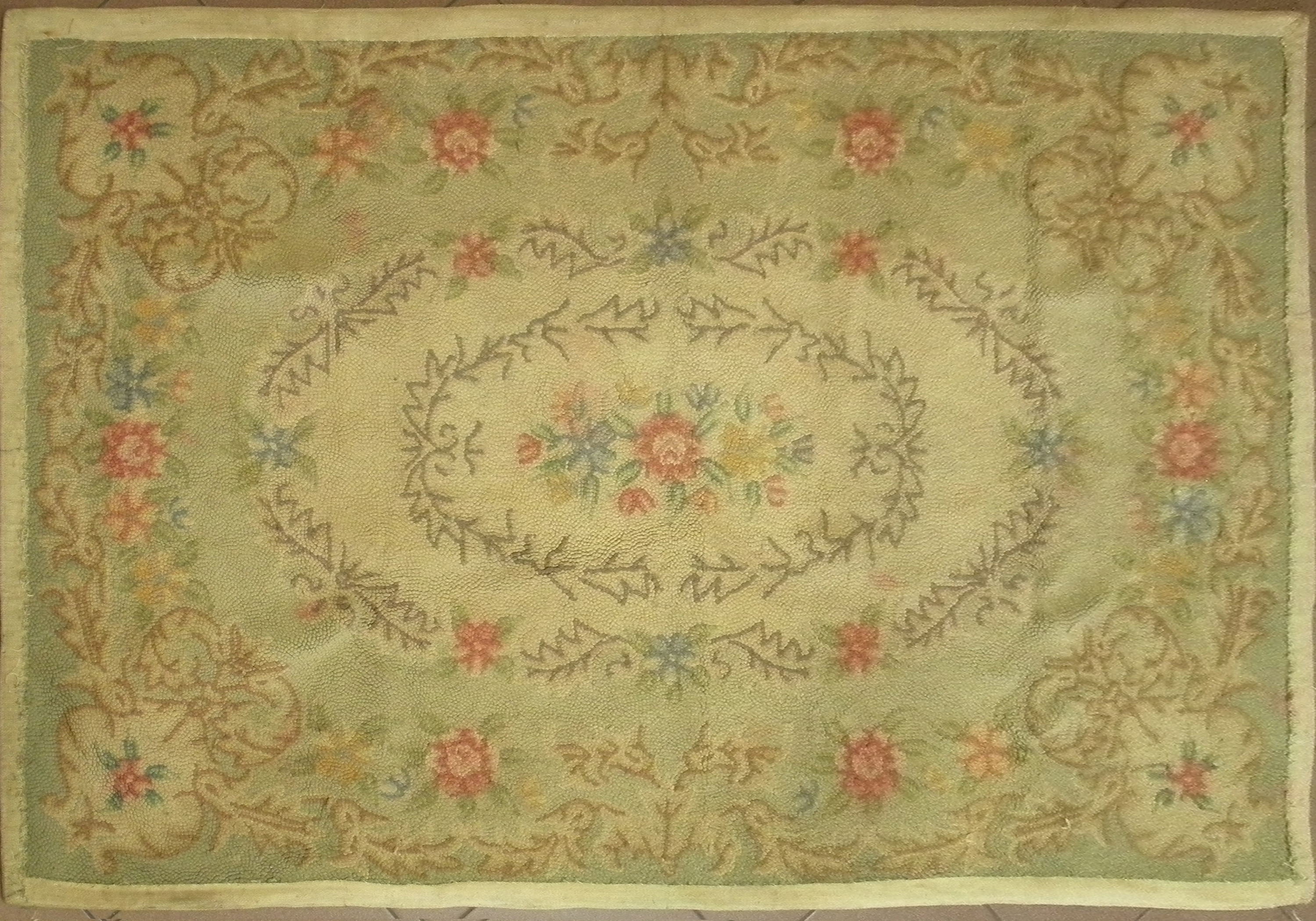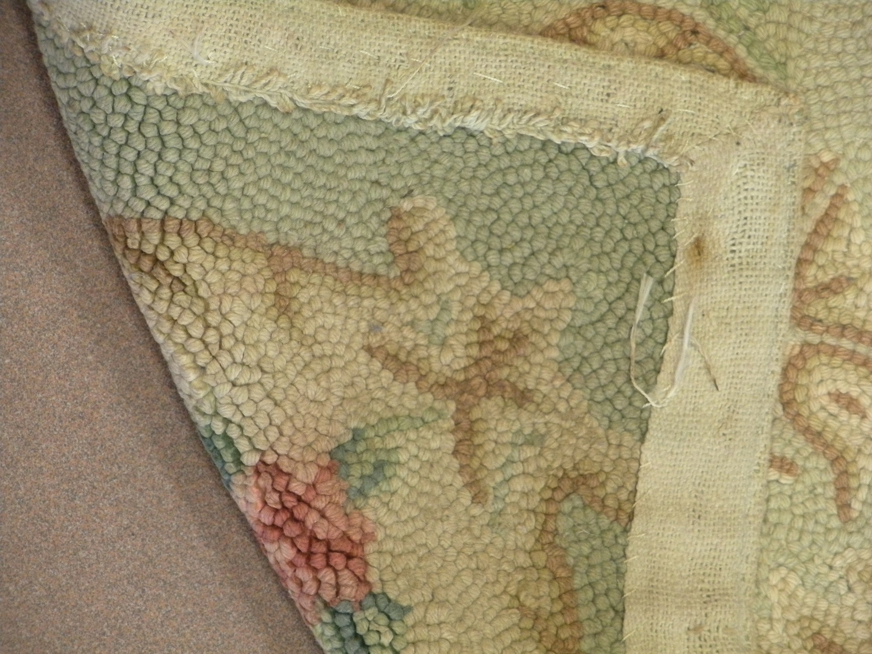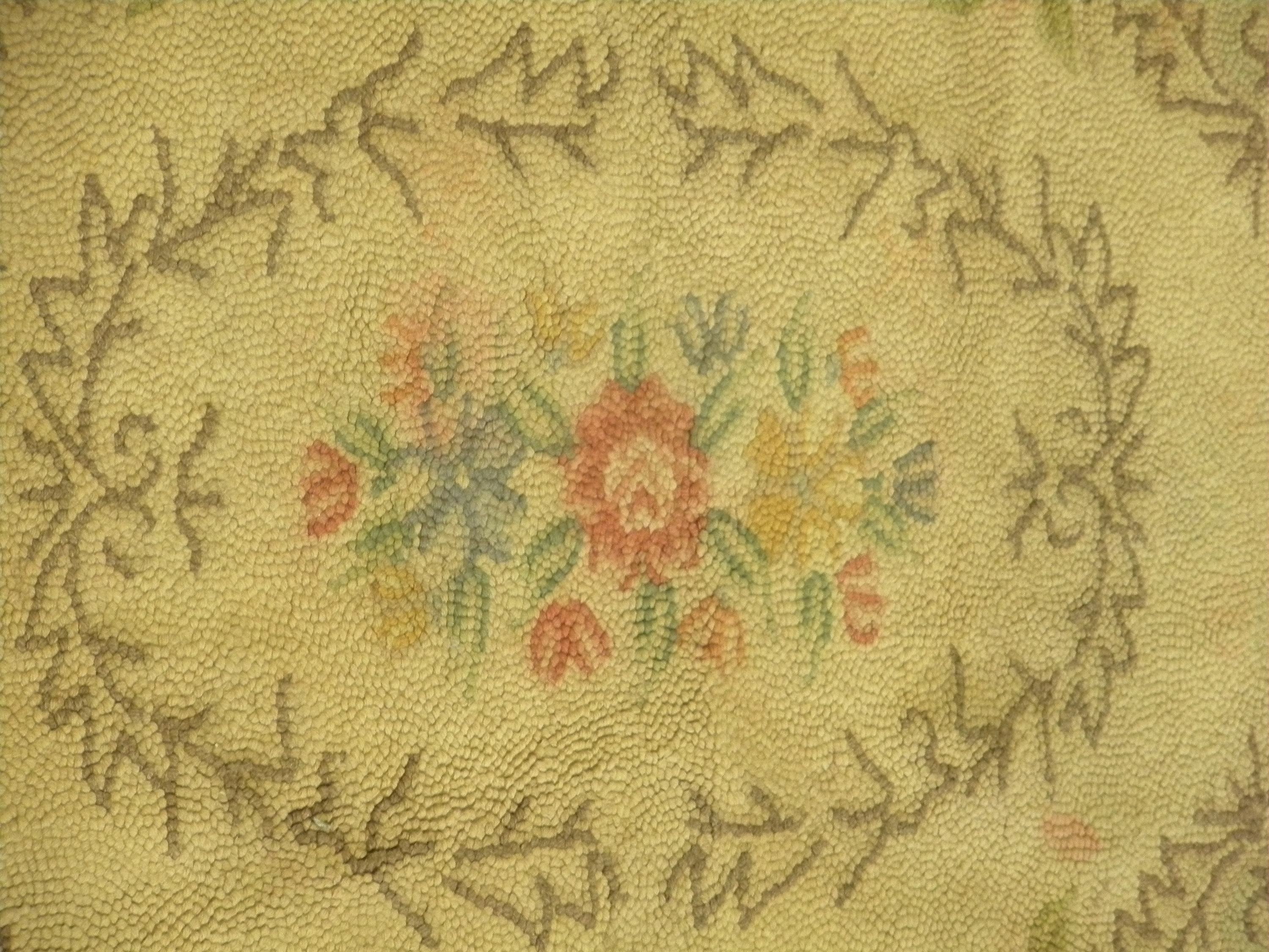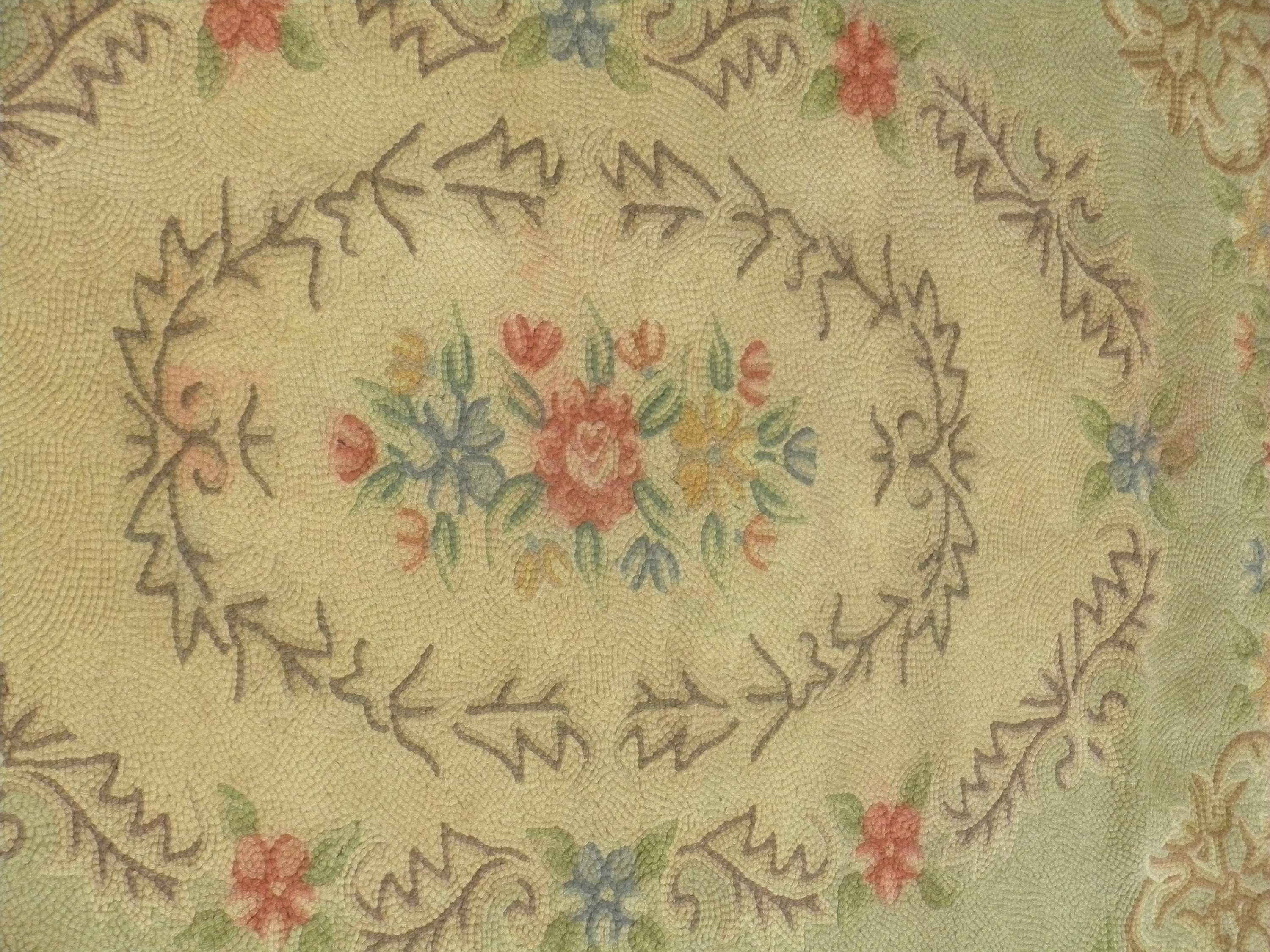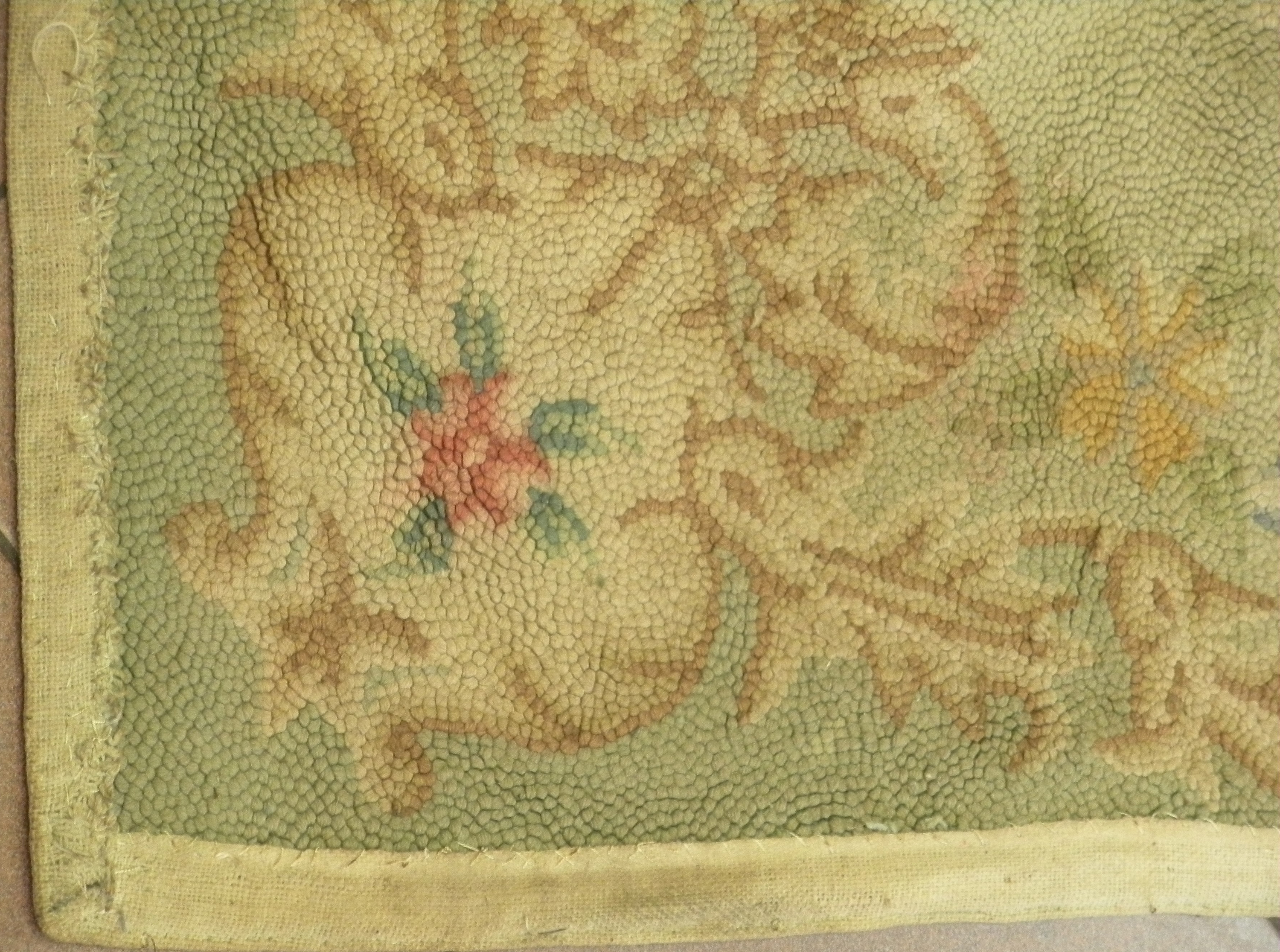 Matière:matériaux neufs - fil de laine hooké sur toile de tapis