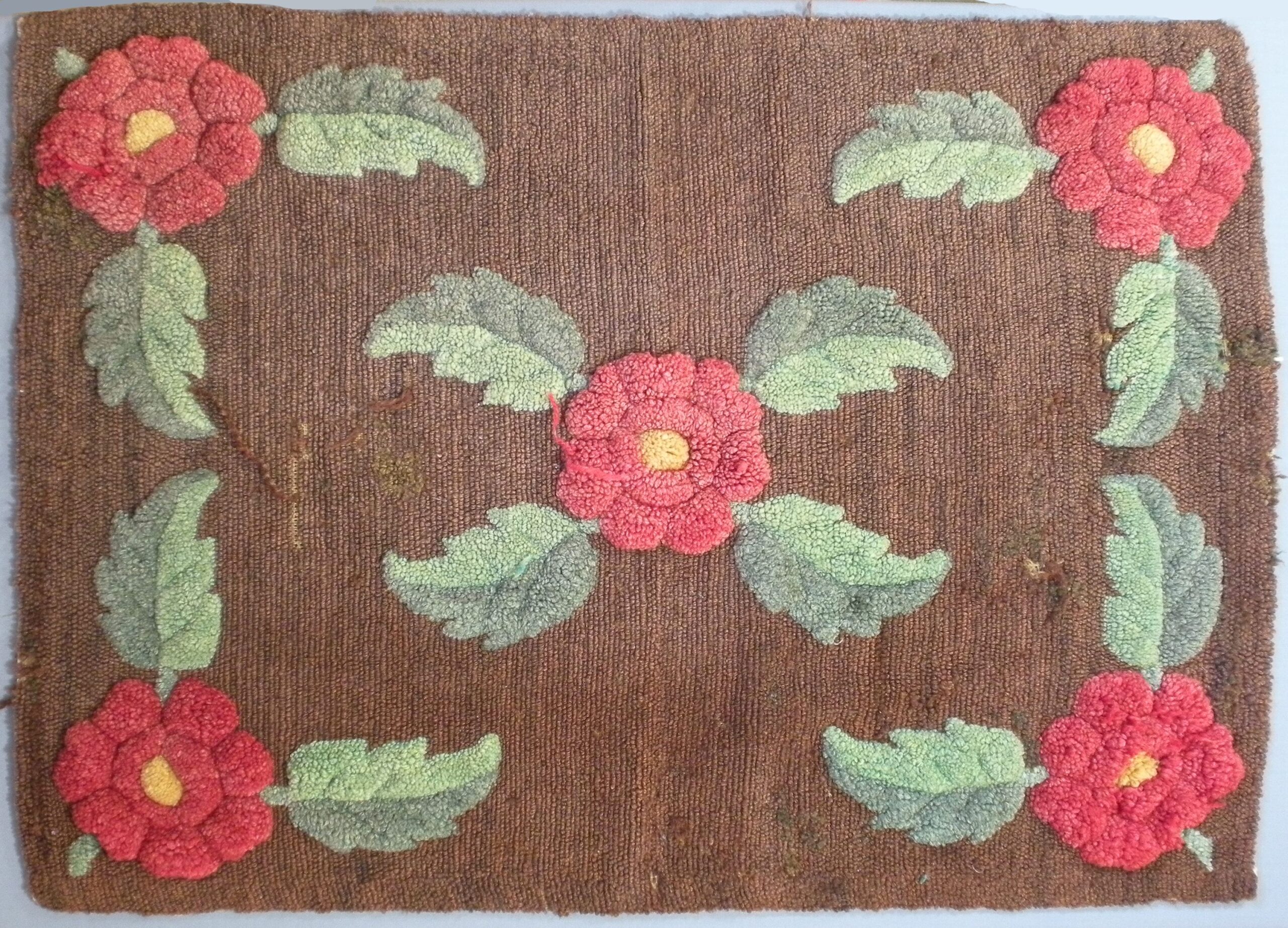 In the 1930s, in a frenzied rush of hooked mat buying, American antique dealers searched the Canadian East Coast and bought all the mats they could to sell on the American market. For this reason, many Canadian mats are now being identified as American, their motifs and the hooking culture being similar between New England and north of the border. Within this region official boundaries did not matter as much, and the populations were quite similar: Indigenous peoples, Acadian and English all occupied this territory. The story of the Abigail Smith mat is a great illustration of this border confusion.