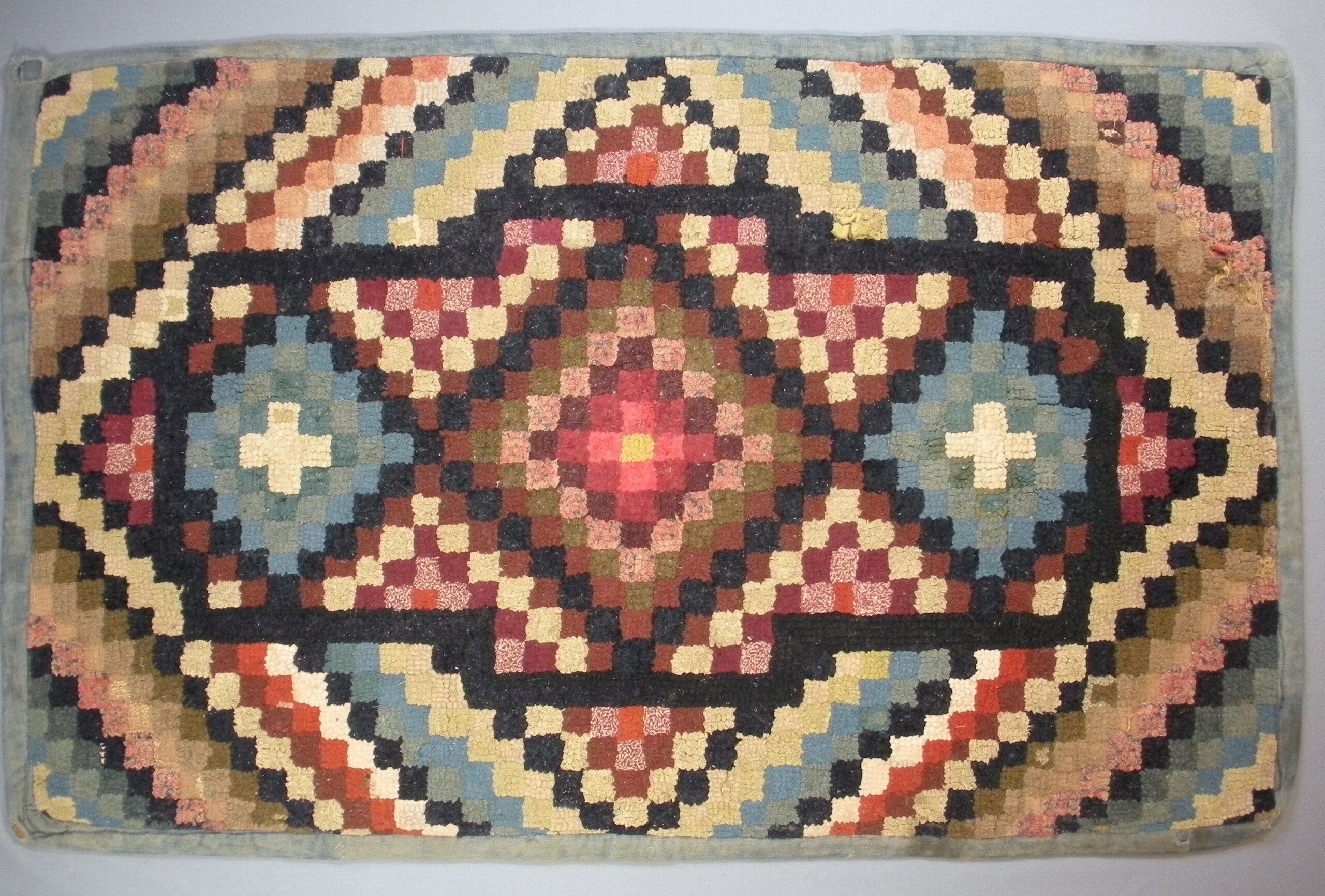 For example, hearth mats were often a semi-circle with a design only meant to be viewed from in front of the fireplace. Others were meant to be seen from all sides, and pictorials or story mats were often seen from one side, although some very creative borders shatter that rule.