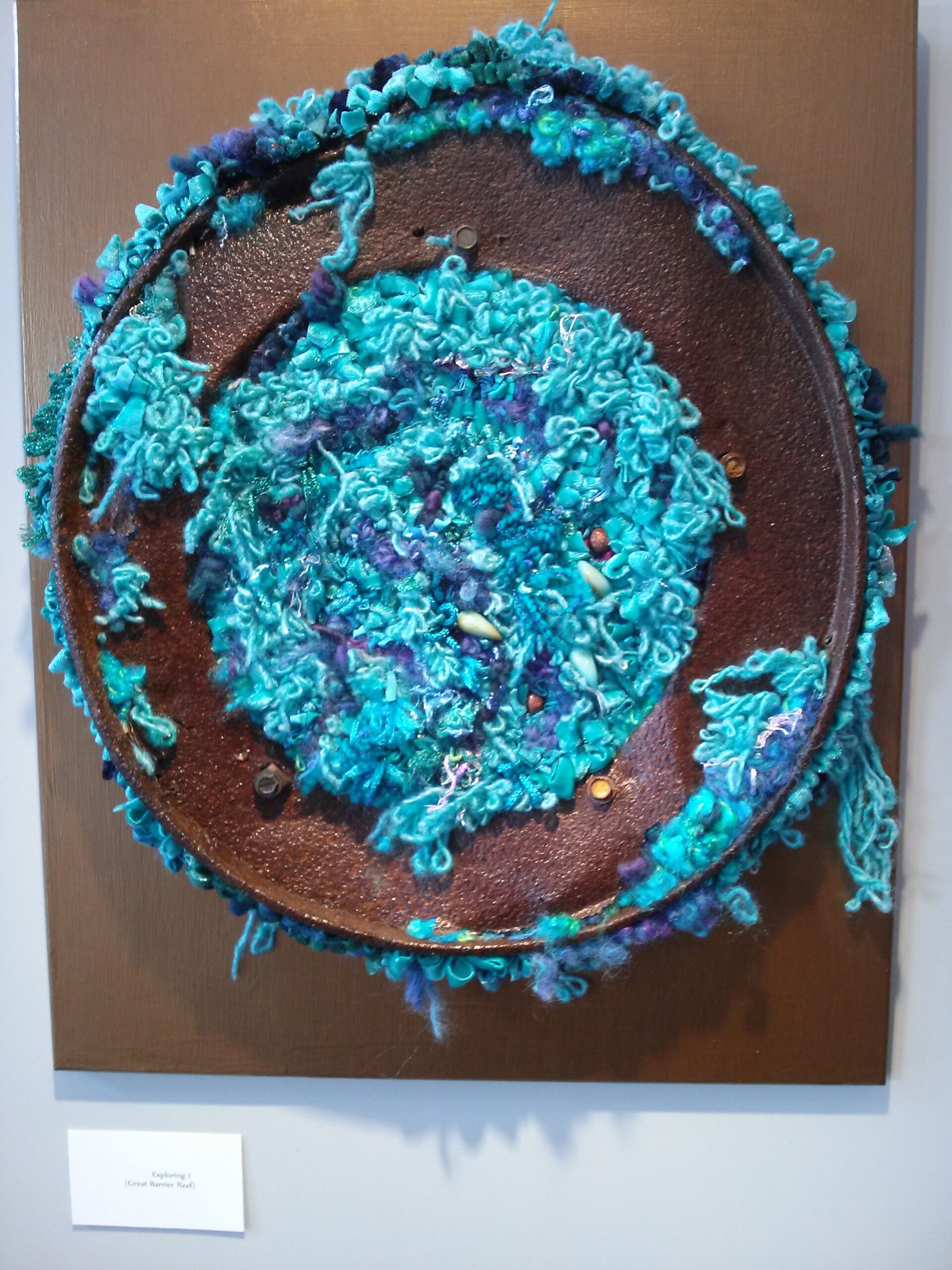 Modern mat hookers creating pieces to be mounted on walls, exhibited as sculpture or integrated in multimedia or interdisciplinary arts have been using unorthodox and original materials, from metal mesh to synthetic fibres, from copper wire to paint and even paper to rusted metal. Anything goes in an artistic creation and mat hooking is an expressive medium limited only by the range of people’s imagination.